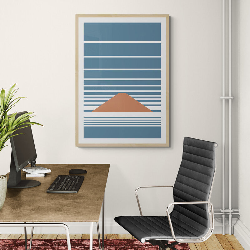 Fuji Clouds is inspired by the view of Mount Fuji emerging through layered clouds when arriving in Japan from the sky. The design reduces the scene to simple geometric forms, creating a balance of stillness and movement. Minimal and modern, it captures the quiet beauty of a fleeting moment in nature.