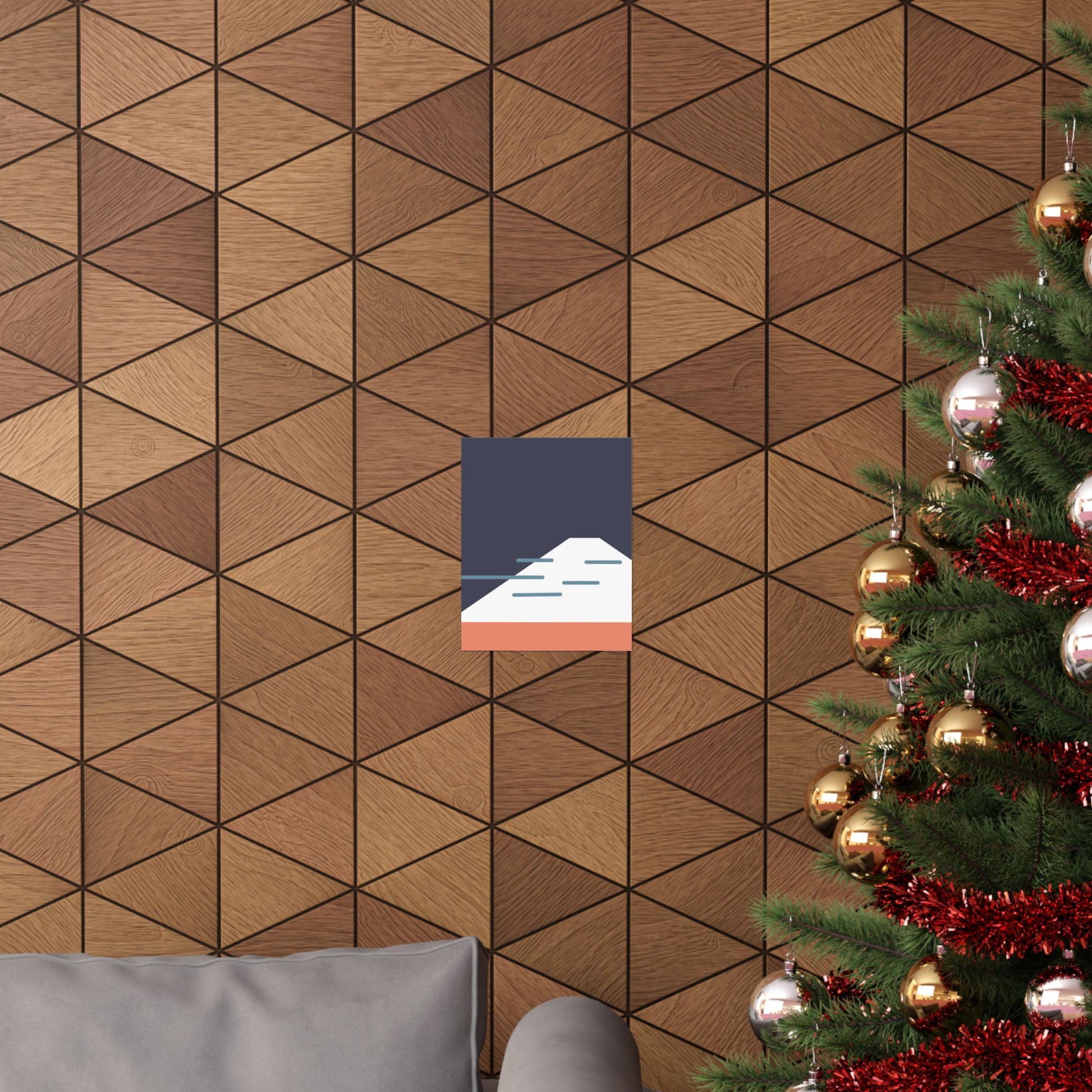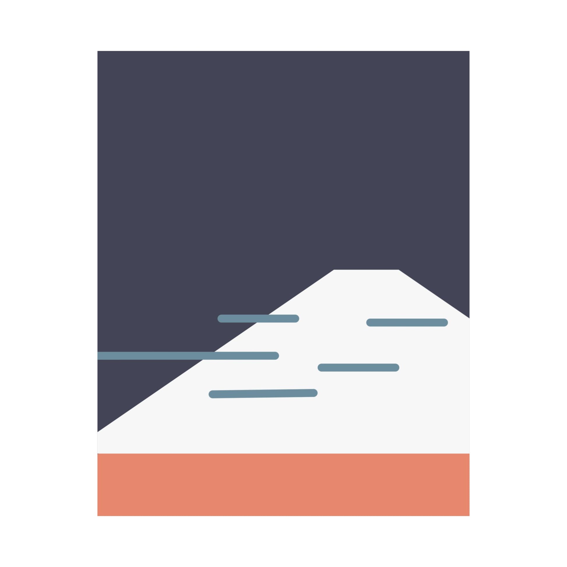 Fuji Coast presents a minimalist coastal scene with Mount Fuji on the horizon. Through simplified forms and muted tones, it captures the gentle rhythm of where land meets sea. Influenced by the visual harmony of Japanese design and the soft palettes of coastal regions like Shizuoka and Kanagawa, this piece embodies structure, stillness, and balance.