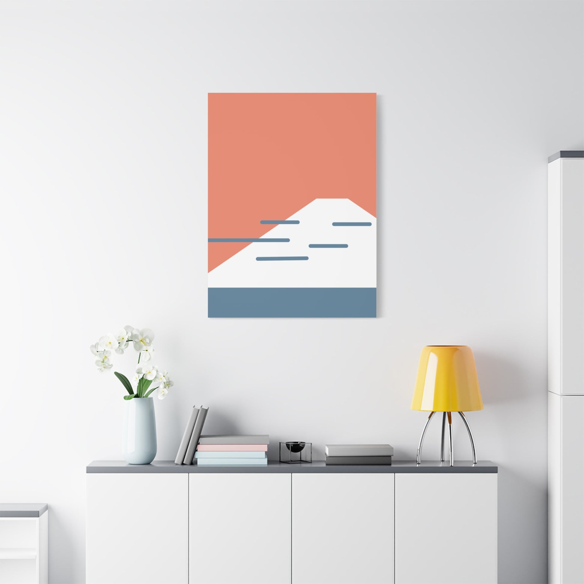A simplified coastal view with Mount Fuji in the distance. Fuji Coast blends clean geometry with subdued colours to evoke the quiet rhythm of land meeting sea. Influenced by Japanese visual balance and the coastal tones of Shizuoka and Kanagawa, this piece offers a soft, structured atmosphere - ideal for interiors that value calm, order, and subtlety.